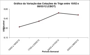 As cotações do trigo em Chicago acabaram perdendo 40 centavos de dólar por bushel na semana, fechando em US$ 6,30 na quinta-feira (08/03).