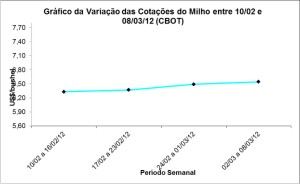 As cotações do milho em Chicago recuaram um pouco no final da semana, porém, mantendo-se em níveis muito semelhantes ao que vem ocorrendo nas últimas semanas. O fechamento do dia 08/03 ficou em US$ 6,45/bushel, contra US$ 6,53 no dia 1º de março.