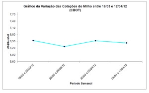 Ao lado o gráfico da variação de preços do milho no período de 16/03 a 12/04/2012.