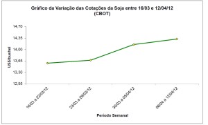 Ao lado o gráfico da variação de preços da soja no período de 16/03 a 12/04/2012.
