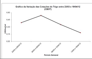 Ao lado o gráfico da variação de preços do trigo no período entre 23/03 e 19/04/2012.