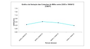 Ao lado o gráfico da variação de preços do milho no período de 23/03 a 19/04/2012.
