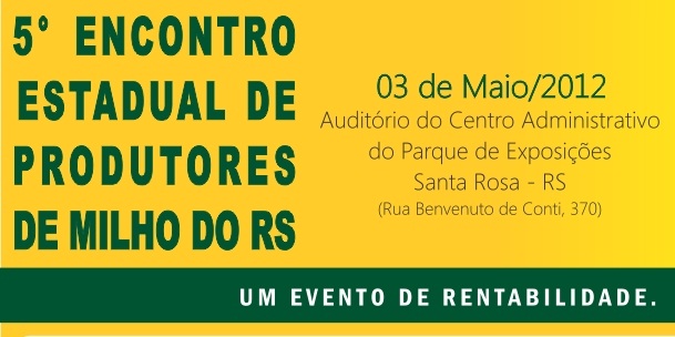 A APROMILHO RS realizará no próximo dia 03 de maio de 2012, nas dependências do Auditório do Centro Administrativo do Parque de Exposições da FENASOJA, em Santa Rosa/RS, o 5º Encontro Estadual de Produtores de Milho do RS.