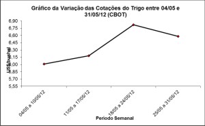 Acima o gráfico da variação de preços do trigo no período entre 04/05 e 31/05/2012.
