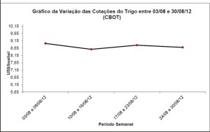 Acima o gráfico da variação de preços do trigo no período entre 03/08 e 30/08/2012.