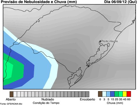 No feriado de sete de setembro, uma nova frente fria avança pelo Rio Grande do Sul, trazendo chuvas ao Centro, Oeste e Sul do Estado. Durante a passagem desse sistema frontal há previsão de trovoadas e rajadas de vento com mais de 100km/h na Região Oeste e Sul do Rio Grande do Sul. Em boa parte do Estado gaúcho a mínima fica entre 15ºC e 18ºC e a máxima atinge os 30ºC na Região Central e Norte. Já em Santa Catarina e no Paraná o feriado fica com tempo firme e não faz tanto frio no começo do dia. Durante a tarde, com sol e ventos que sopram predominantemente de quadrante norte, a sensação de calor aumenta, especialmente no interior paranaense, onde a temperatura passa dos 33ºC. Já na faixa oeste de Santa Catarina a máxima fica em torno dos 30ºC.