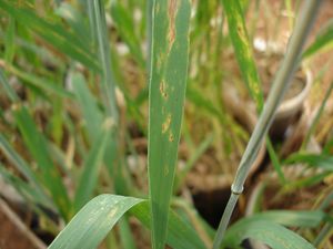 - MANCHAS FOLIARES: as mais frequentes são macha marrom, mancha amarela e mancha das glumas. O controle principal é a rotação de culturas, que pode reduzir a incidência de manchas em até sete vezes, associado ao tratamento de sementes e ao uso de cultivares resistentes. O monitoramento da lavoura deve iniciar a partir do alongamento, mas para determinar para determinar o controle das manchas é preciso fazer amostragem de plantas infectadas em vários pontos da lavoura.