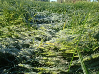 Primeiramente aquelas lavouras mais próximas da floração, os danos foram maiores, e aquelas lavouras mais próximas do final do enchimento, os danos bem menores. De maneira geral, é muito difícil se quantificar em percentual as perdas que ocorreram, mesmo porque, visualmente os danos costumam aparecer melhor após a ocorrência de chuvas previstas, quando será possível visualizar melhor todos esses danos.