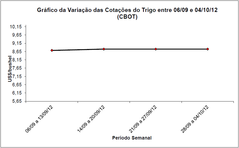 Acima o gráfico da variação de preços do trigo no período entre 06/09 e 04/10/2012.