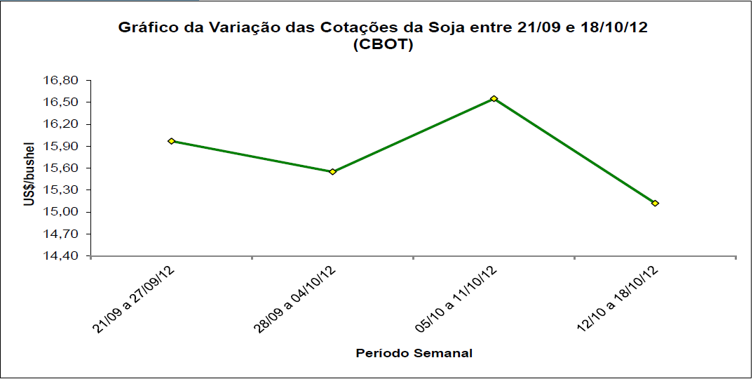 Acima o gráfico da variação de preços da soja e seus derivados no período de 21/09 a 18/10/2012.