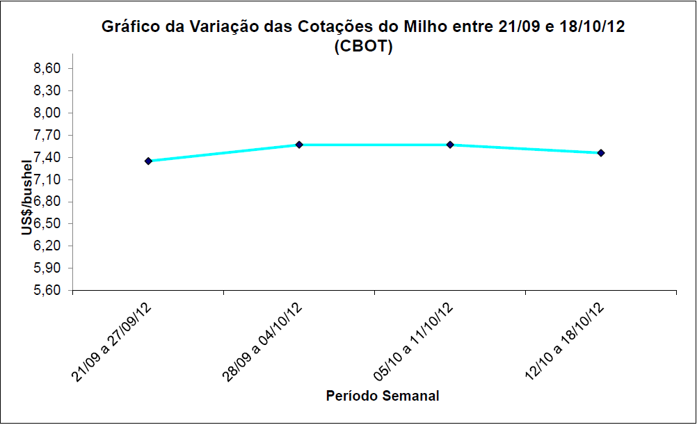 Acima o gráfico da variação de preços do milho no período de 21/09 a 18/10/2012.