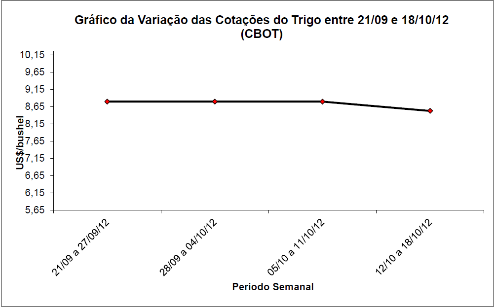 Acima o gráfico da variação de preços do trigo no período entre 21/09 e 18/10/2012.