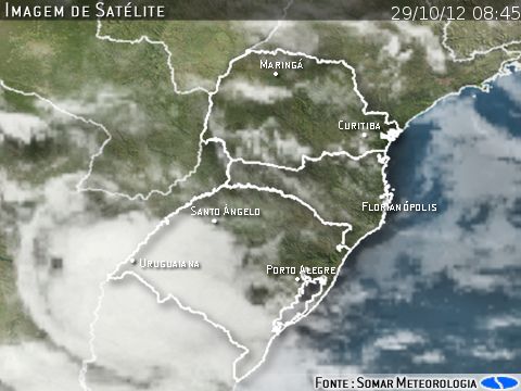 A formação de uma área de baixa pressão faz a semana iniciar com muita nebulosidade e chuvas sobre a Região Sul. No Paraná o dia começa com variação de nebulosidade e as pancadas fracas de chuva ocorrem entre a tarde e a noite, atingindo toda a metade sul do Estado. Já entre Santa Catarina e o Rio Grande do Sul as chuvas ocorrem a qualquer momento, inclusive com condição para temporais isolados. Estas chuvas mais intensas ficam mais restritas ao Estado Gaúcho, atingindo a centro, Fronteira Oeste, Campanha e a Região Metropolitana de Porto Alegre, vindo acompanhadas de muitas trovoadas, rajada de vento de 70km/h e granizo. Logo cedo as temperaturas mínimas variam entre 17°C e 20°C em grande parte da Região. Já as máximas ficam entre 23°C e 26°C na maioria dos municípios gaúchos e do leste de Santa Catarina. Já no Paraná a tarde segue abafada, com termômetros passando dos 32°C no oeste, centro e norte do Estado.