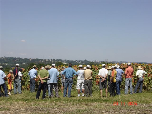 Aos poucos a cultura do girassol deixa de ser desconhecida, arriscada e pouco importante. Os desafios do mercado, antes para pequenos nichos e agora mais ousados com os projetos recentes do biodiesel, tornam essa cultura atrativa e faz aumentar o interesse dos produtores. A COTRIJUI, que desde 1999 desenvolve um programa de repasse de tecnologia e acompanhamento com os associados, repetiu na quarta-feira, dia 23, o que vem sendo feito. Reunir o quadro técnico, os produtores e conversar sobre girassol.