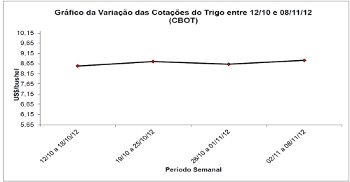 Abaixo segue o gráfico da variação de preços do trigo no período entre 12/10 e 08/11/2012.