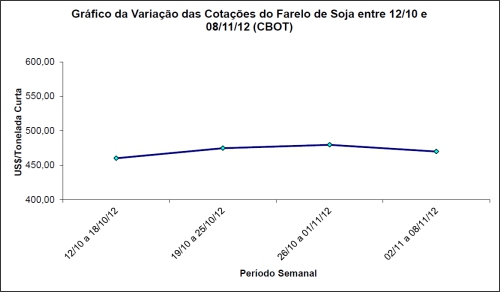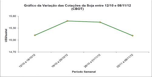 Abaixo seguem os gráficos da variação de preços da soja e seus derivados no período de 12/10 a 08/11/2012.