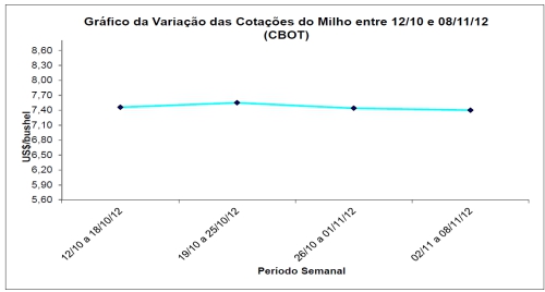 Abaixo segue o gráfico da variação de preços do milho no período de 12/10 a 08/11/2012.