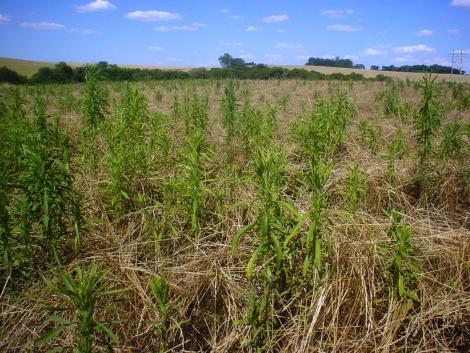 Este ano não temos à disposição um dos herbicidas que mais nos auxiliam no controle, o Paraquat. Porém, as plantas que cresceram em meio ao trigo cresceram sombreadas, portanto, têm folhas um pouco mais finas e o herbicida penetra com mais facilidade. Nessa situação, com plantas em torno de 10cm de altura, é possível a passagem de apenas uma aplicação de herbicida. A aplicação de Glifosato mais outro produto com ação sistêmica, como, por exemplo, Clorimuron, Classic, Spyder, entre outros.