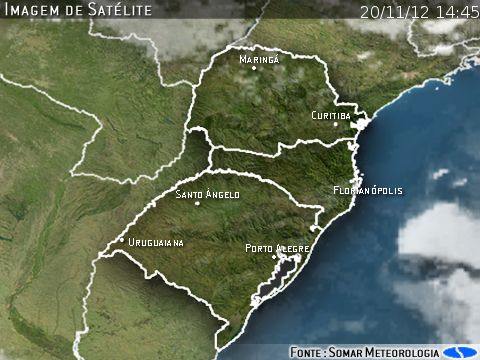 21/11 - Na quarta-feira, apesar de um pequeno aumento na nebulosidade, o tempo firme ainda predomina na Região Sul. Novamente, a chuva fica restrita a pontos isolados do Paraná e Santa Catarina e vem em fraca intensidade e na forma de pancadas rápidas. As temperaturas seguem em elevação e, no noroeste do Paraná, a máxima chega a superar os 33°C. Por conta das altas temperaturas, os índices de umidade do ar ficam novamente abaixo do ideal, principalmente na fronteira com o Uruguai.