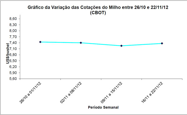 Abaixo segue o gráfico da variação de preços do milho no período de 26/10 a 22/11/2012.