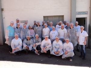 Recepcionaram o grupo de 28 pessoas o Encarregado da Fábrica de Rações, Sr. Rafael Grando, o Supervisor de Produção Nilson Teles de Vargas e a Coordenadora de Controle de Qualidade, Geórgia Schifer.
